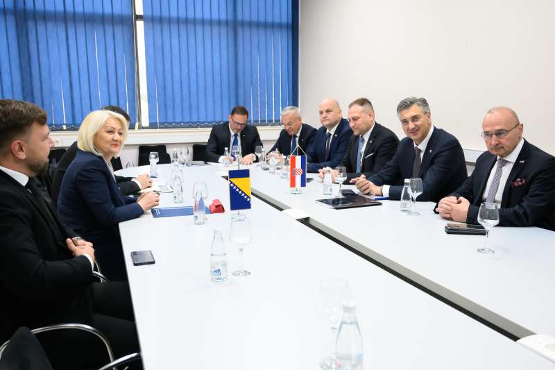 SARAJEVO, April 14 (FENA) – Ahead of the official opening of the International Economy Fair in Mostar, a bilateral meeting was held between Chairwoman of the Council of Ministers of Bosnia and Herzegovina Borjana Krišto and Prime Minister of the Republic of Croatia Andrej Plenković.