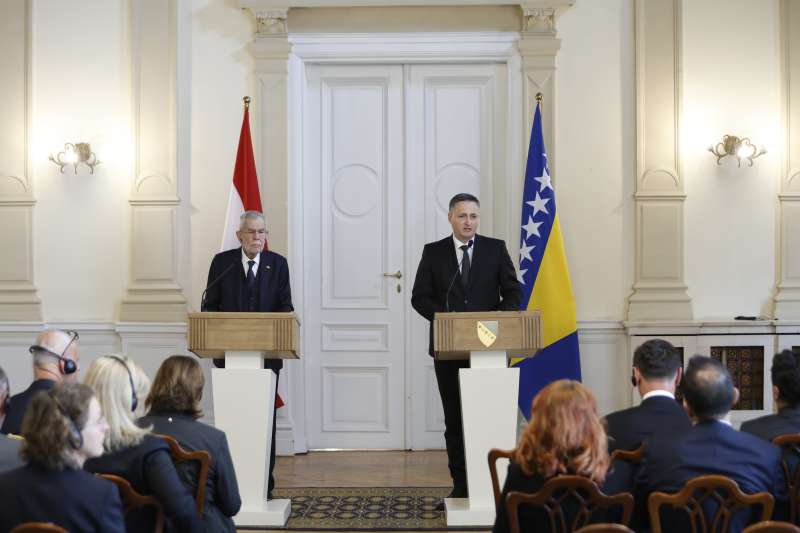 SARAJEVO, 14. aprila (FENA) - Predsjedavajući Predsjedništva Bosne i Hercegovine Denis Bećirović je na pres-konferenciji nakon sastanka sa predsjednikom Republike Austrije Alexanderom Van der Bellenom kazao da su zajednički konstatirali da Bosna i Hercegovina i Republika Austrija imaju odličnu i bilateralnu i multilateralnu saradnju, te da su odnosi tradicionalno prijateljski i dobri na svim nivoima.