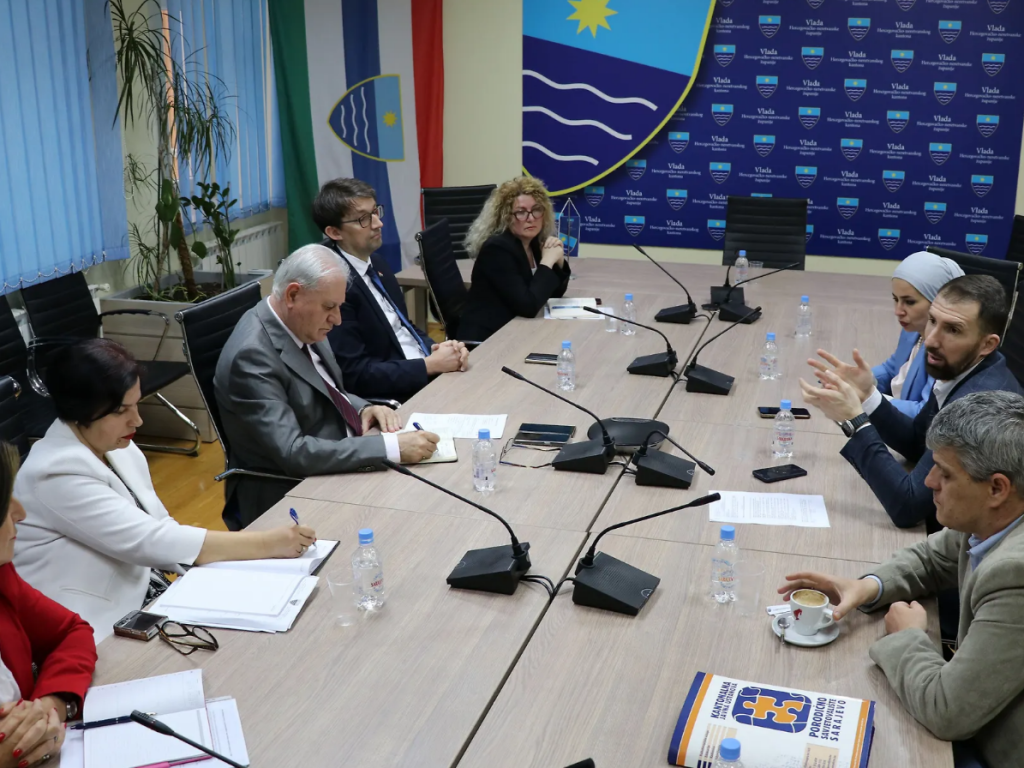 MOSTAR, 16. travnja (FENA) - Radni sastanak federalnoga ministra rada i socijalne politike Adnana Delića, ministra zdravstva, rada i socijalne skrbi HNŽ-a Milenka Bevande i ministra zdravstva, rada, obitelji i socijalne politike Županije Zapadnohercegovačke (ŽZH) Tomislava Pejića održan je u četvrtak u zgradi Vlade Hercegovačko-neretvanske županije (HNŽ).