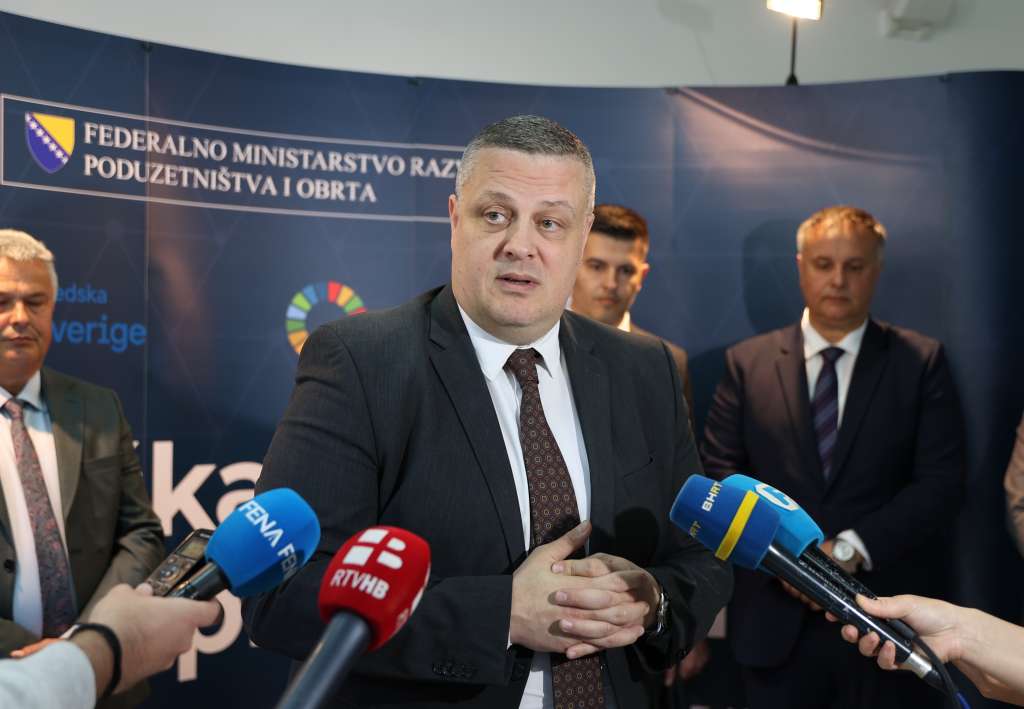 MOSTAR, 23. travnja (FENA) - Zamjenik premijera Federacije BiH i federalni ministar razvoja, poduzetništva i obrta Vojin Mijatović potpisao je u četvrtak u Mostaru ugovore s predstavnicima 22 lokalne zajednice o implementaciji poticajnih financijskih sredstava za projekte "Izgradnja poduzetničkih zona", te s devet predstavnika poduzetničkih potpornih institucija u okviru projekta "Unaprjeđenje institucijske poduzetničke infrastrukture".