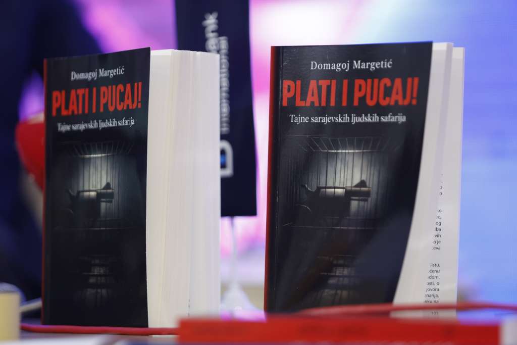 SARAJEVO, 24. aprila (FENA) - Knjiga istraživačkog novinara iz Hrvatske Domagoja Margetića "Plati i pucaj -Tajne sarajevskih ljudskih safarija" predstavljena je danas na Sarajevskom sajmu knjiga.
