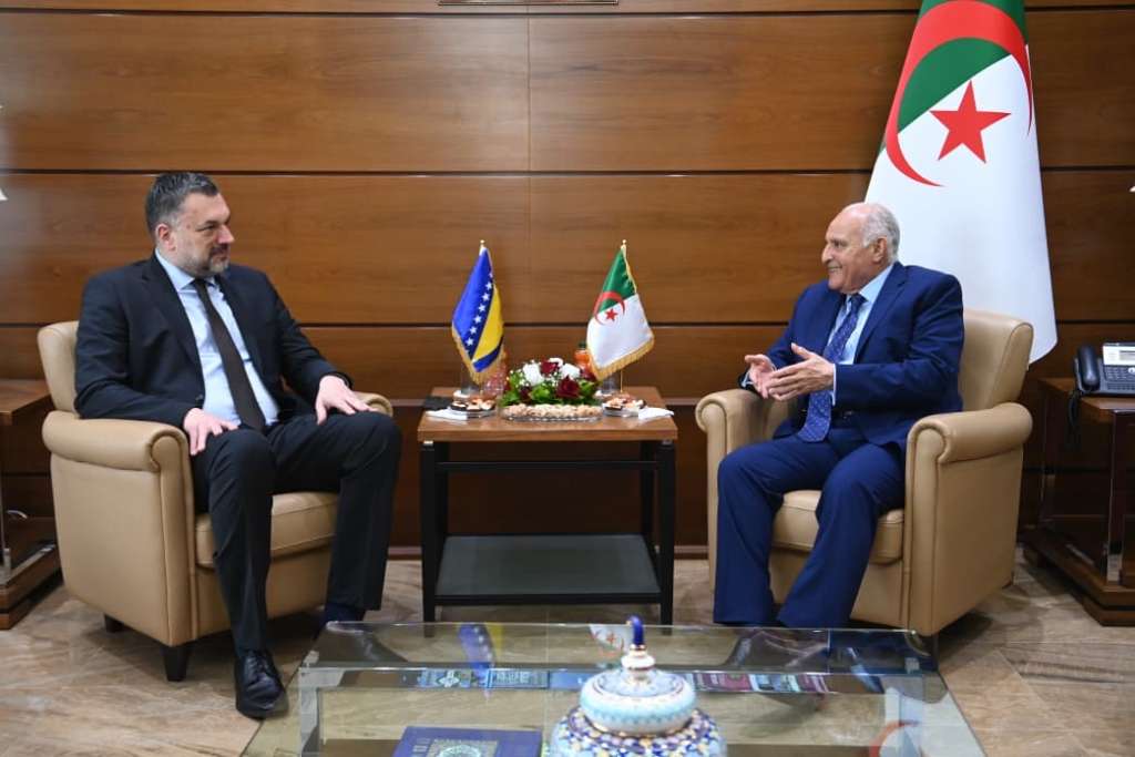 SARAJEVO, 27. aprila (FENA) - Ministar vanjskih poslova Bosne i Hercegovine Elmedin Konaković sastao se danas u Alžiru s ministrom vanjskih poslova, nacionalne zajednice u inostranstvu i afričkih poslova Narodne Demokratske Republike Alžir Ahmedom Attafom, gdje je tokom susreta poseban fokus stavljen na unaprjeđenje ekonomske saradnje.