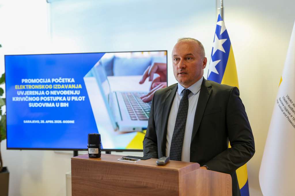 SARAJEVO, 28. aprila (FENA) - Visoko sudsko i tužilačko vijeće BiH predstavilo je danas u Sarajevu mogućnost elektronskog izdavanja uvjerenja o nevođenju krivičnog postupka u općinskim sudovima u Bihaću, Mostaru, Sarajevu i Širokom Brijegu.