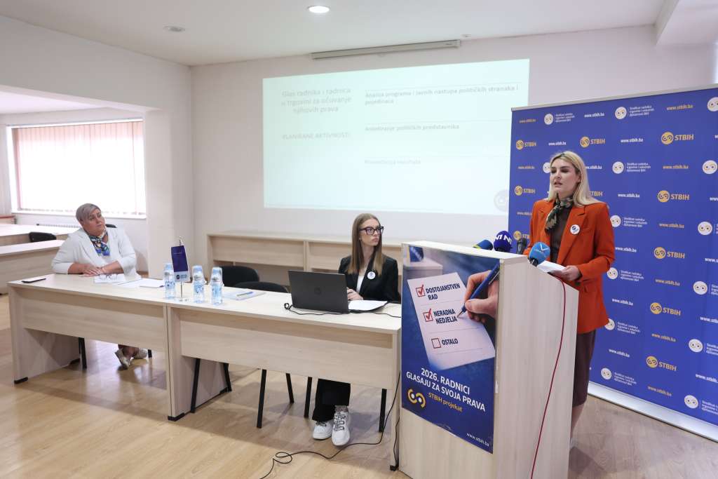 SARAJEVO, 29. aprila (FENA) - Sindikat trgovine i uslužnih djelatnosti BiH pokrenuo je danas u Sarajevu projekt "2026. radnici glasaju za svoja prava" s ciljem da mobiliše radnike da izađu na izbore, te da im ponudi argumentirane, objektivne i transparente podatke o tome šta nude političke stranke, šta su dosad uradile i šta zagovaraju kada su u pitanju radnička prava.