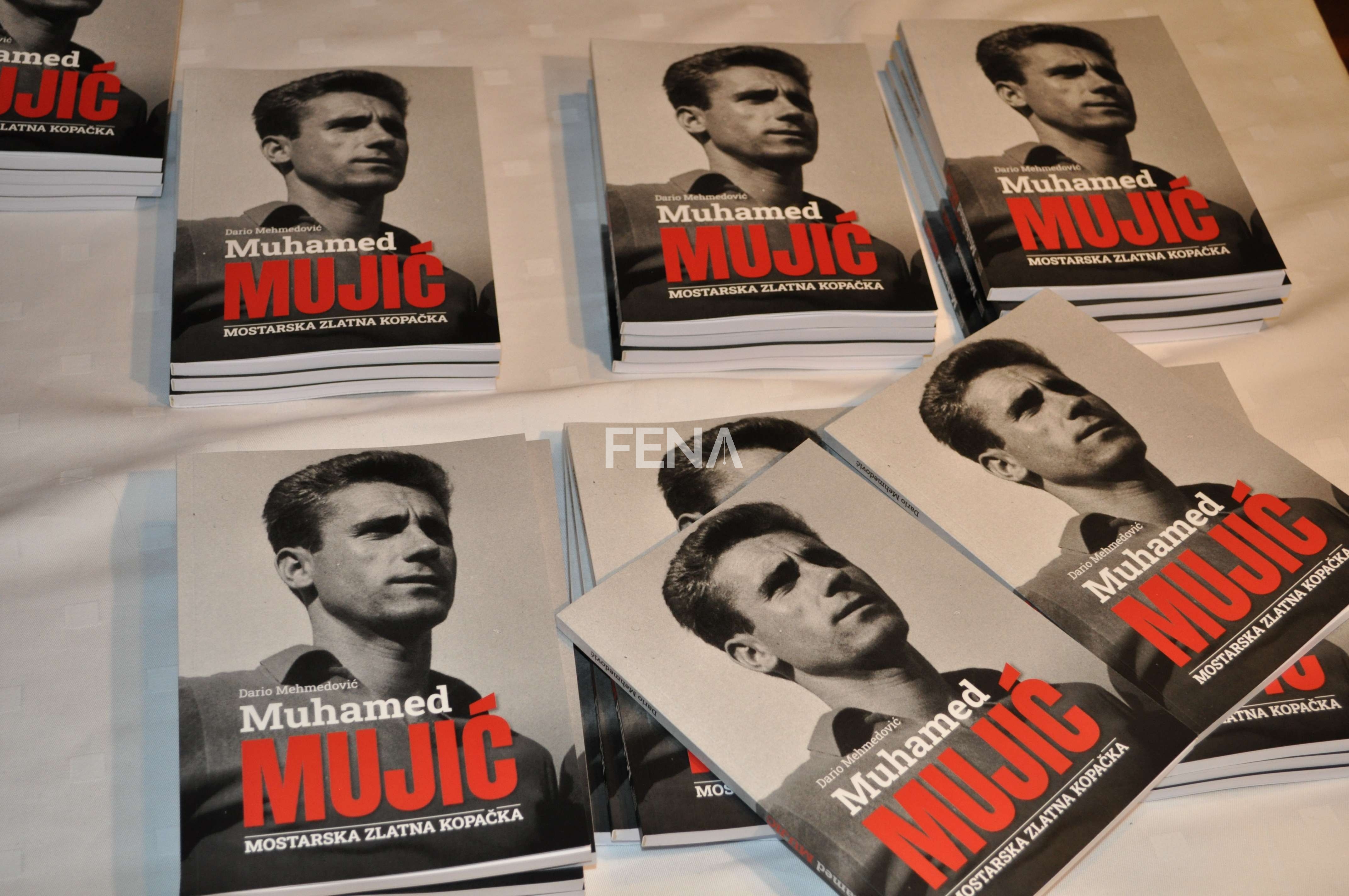 MOSTAR, 16. svibnja (FENA) - Knjiga "Muhamed Mujić - Mostarska zlatna kopačka", u kojoj je autor Dario Mehmedović na autentičan način prezentirao život i karijeru jednog od najboljih igrača u povijesti Veleža i BiH, promovirana je u ponedjeljak u Mostaru. (Foto FENA/Tomislav Glamuzina)
