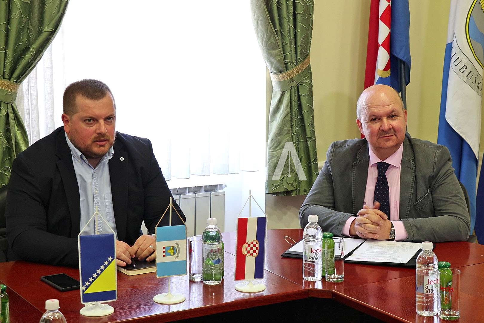 LJUBUŠKI, 22. ožujka (FENA) - Gradonačelnik Ljubuškog Vedran Markotić razgovarao je u srijedu s ravnateljem Direkcije za europske integracije BiH Edinom Dilberovićem o projektima prekogranične suradnje koje je Grad Ljubuški realizirao preko fondova Europske unije, kao i o mogućnostima sudjelovanja u novim projektima u budućem razdoblju.(Foto FENA/ES)
