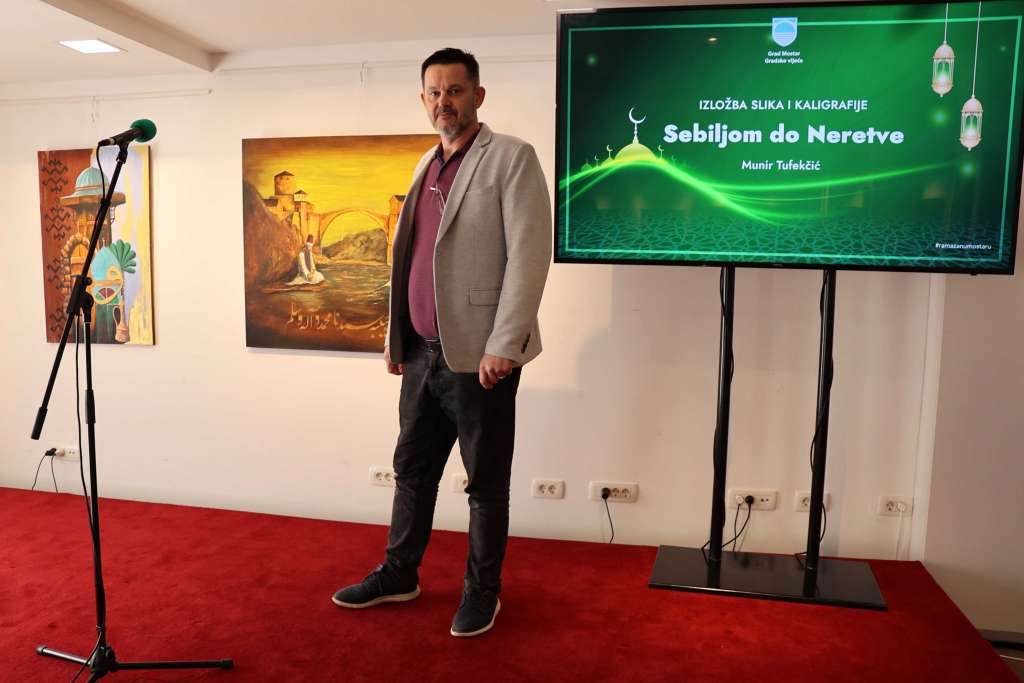 MOSTAR, 29. marta (FENA) - "Sebiljom do Neretve" naziv je izložbe slika i kaligrafskih radova zeničkog umjetnika Munira Tufekčića koja je otvorena u srijedu u mostarskom Centru za kulturu.