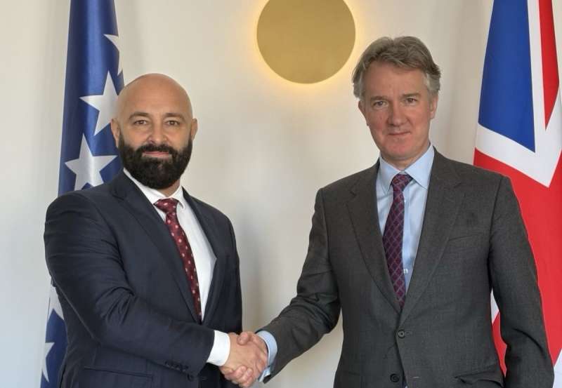 SARAJEVO, 27. aprila (FENA) - Član Predsjedništva BiH Denis Bećirović razgovarao je s ambasadorom Ujedinjenog Kraljevstva Velike Britanije i Sjeverne Irske u BiH Julianom Reillyjem o trenutnoj situaciji u Bosni i Hercegovini.