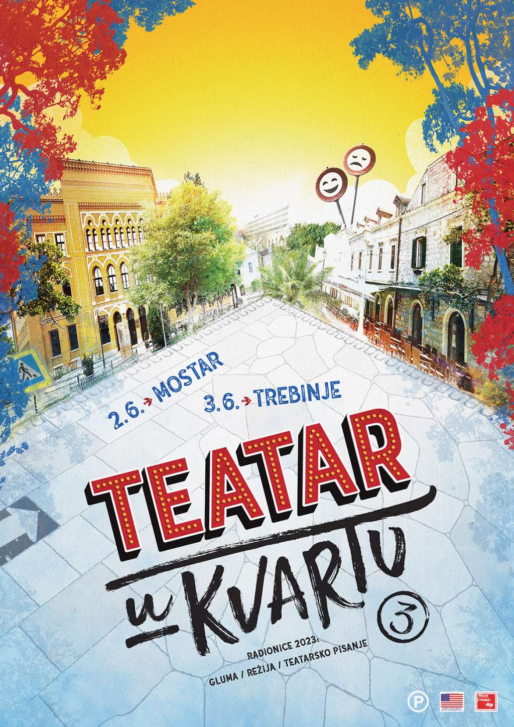 MOSTAR, 29. svibnja (FENA) - Projekat "Teatar u kvartu 3.0" okupit će devet bosanskohercegovačkih glumaca i glumica koji će 2. lipnja, u Mostaru, na Španjolskom trgu, s tri reditelja/ice raditi na tri kratke predstave po dramskim tekstovima tri autora/ice nastalim u jednom danu.