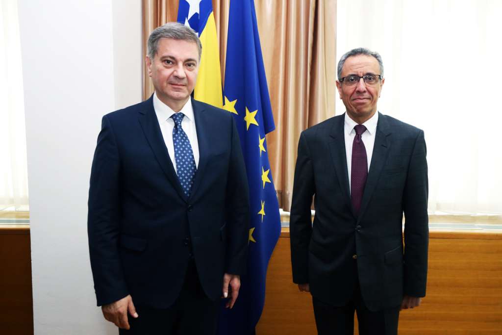 SARAJEVO, 1. juna (FENA) - Predsjedavajući Predstavničkog doma Parlamentarne skupštine Bosne i Hercegovine Denis Zvizdić sastao se s ambasadorom Arapske Republike Egipat u BiH Yasserom Abdelrahmanom Alijem Sorourom.