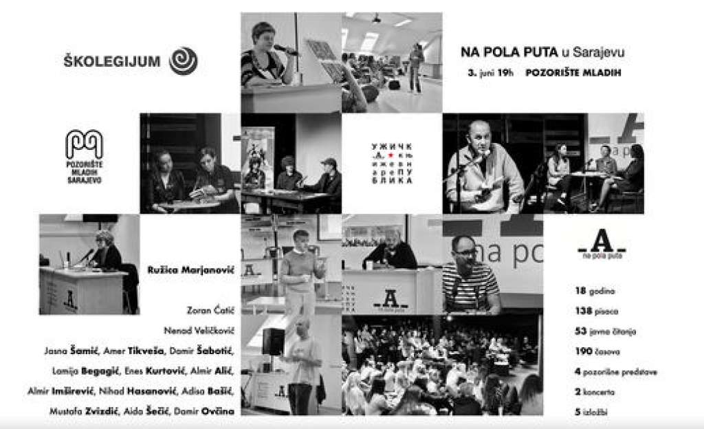 SARAJEVO, 3. juna (FENA) – Književni festival "Na pola puta" iz Užica biće predstavljen večeras u 19 sati u Pozorištu mladih u Sarajevu, u okviru "Dana Školegijuma".