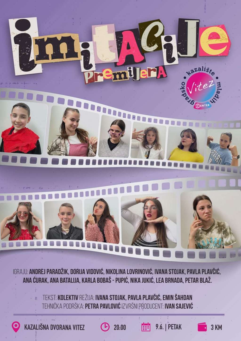 - Nakon što je proteklog vikenda u premijeri predstave "Trnoružica i hrabri princ" GKM-a Vitez uživalo više od 400 posjetitelja, nema dileme kako će se i za novu premijeru tražiti ulaznica više. Premijera predstave 'Imitacije' je događaj koji ne smijete propustiti! Pridružite nam se kako bismo zajedno uživali u novoj čaroliji koju su nam pripremili naši mladi kazalištarci - poručili su iz GKM Vitez.