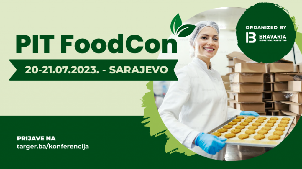 SARAJEVO, 5. jula (FENA) - Konferencija prehrambene industrije Bosne i Hercegovine "PIT FoodCon 2023: Tradicija i inovacije, okusi budućnost(i)!" bit će održana 20. i 21. jula u Sarajevu u organizaciji agencije za industrijski marketing Bravaria Industrial Marketing.
