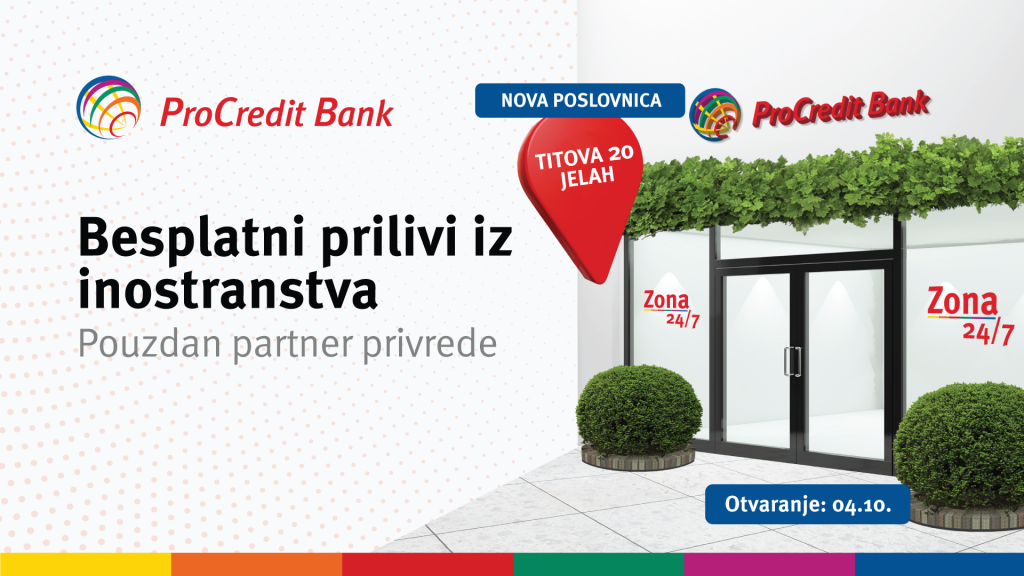 MOSTAR, 29. rujna (FENA) - ProCredit Bank je prvi izbor poslovne banke u Bosni i Hercegovini, a razlozi za to su brojni. U ovoj banci sa njemačkim kapitalom savršeno razumiju potrebe MSME sektora (vrlo mala, mala i srednja preduzeća) što, imajući u vidu više od 26 godina iskustva u poslovanju na bh. tržištu, ne čudi. ProCredit Bank će u srijedu, 04.10., otvoriti novu poslovnicu u Jelahu. Šta je razlog ovoj odluci, provjerili smo sa predsjednikom Uprave ProCredit Bank, Amirom Salkanovićem.