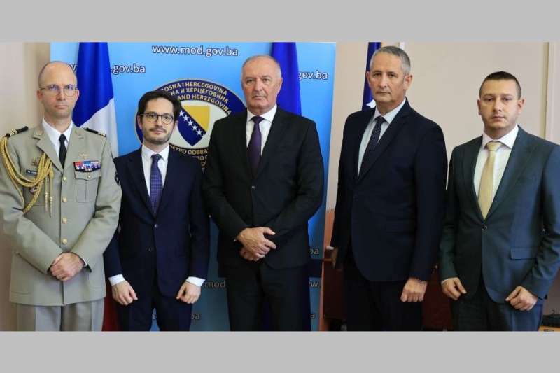 SARAJEVO, 23. oktobra (FENA) - Ministar odbrane BiH Zukan Helez primio je danas u nastupnu posjetu ambasadora Republike Francuske u BiH Françoisa Delmasa, s kojom je razgovarao o bilataralnoj-odbrambenoj saradnji, aktualnoj sigurnosnoj situaciji u svijetu, te aktivnostima Ministarstva odbrane i Oružanih snaga BiH.