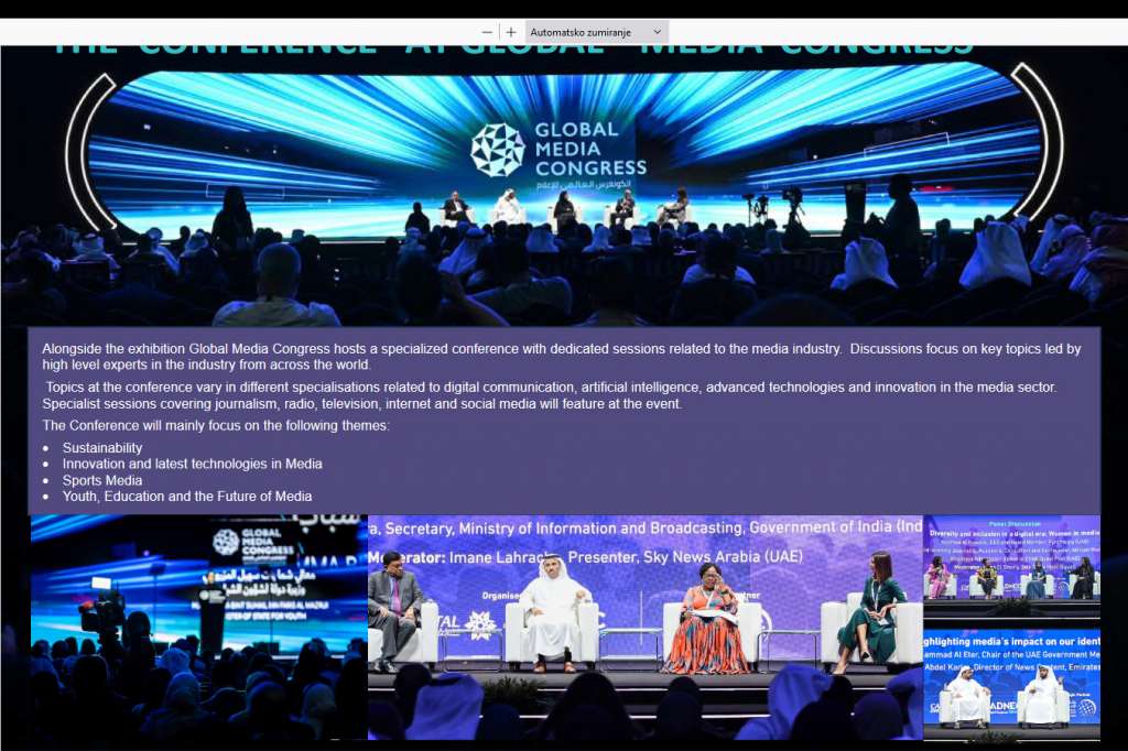 ABU DHABI/SARAJEVO, October 24 (FENA) - The organizers of the second Global Media Congress (GMC), which will be held from November 14 to 16 this year in Abu Dhabi, have announced a rich program with numerous panel discussions in which the participation of prominent persons from the media, as well as numerous other spheres, is expected.