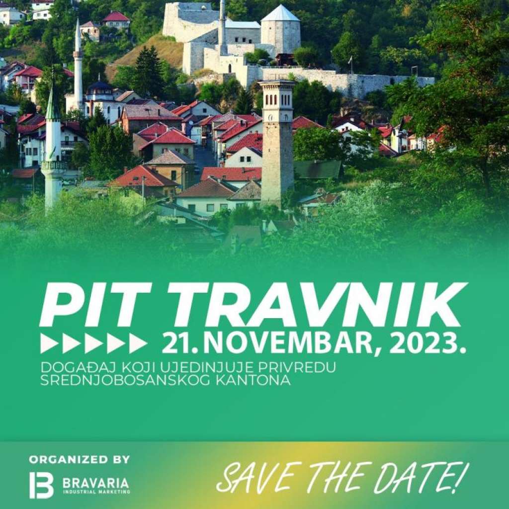 TRAVNIK, 16. novembra (FENA) - PIT Travnik 2023: "Postignuća drugih – impuls za rast moje kompanije“ naziv je događaja koji će biti održan 21. novembra u Travniku, a koji organizira Agencija za industrijski marketing Bravaria Industrial Marketing, u saradnji s Ministarstvom privrede Srednjobosanskog kantona, konsultantskom kućom Targer E&C i brendom PIT Events.