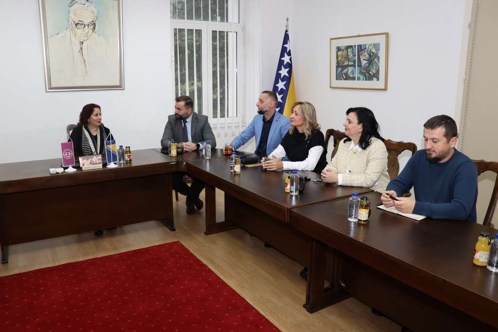 MOSTAR, 21. studenoga (FENA) - Izaslanstvo novoizabranih ministara u Vladi Hercegovačko-neretvanske županije (HNŽ) i predsjedavajući Skupštine HNŽ-a u utorak su održali sastanak s rektoricom i menadžmentom Univerziteta "Džemal Bijedić" u Mostaru (UNMO), tijekom kojeg su istaknuti ključni ciljevi i vizija Univerziteta, kao i spremnost županijskih vlasti na pružanje podrške svim projektima i aktivnostima koji za cilj imaju razvoj obrazovanja u HNŽ-u.