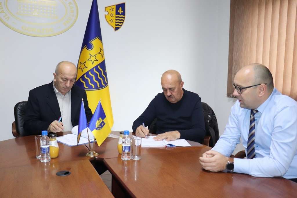 GORAŽDE, 24. novembra (FENA) – Premijer Bosanskopodrinjskog kantona (BPK) Goražde Edin Ćulov sa direktorom firme „Baša“ doo Ustikolina Suvadom Bašićem kao izvođačem radova, danas je potpisao ugovor o rekonstrukciji fiskulturne sale Osnovne škole „Mehmedalija Mak Dizdar“ Vitkovići.