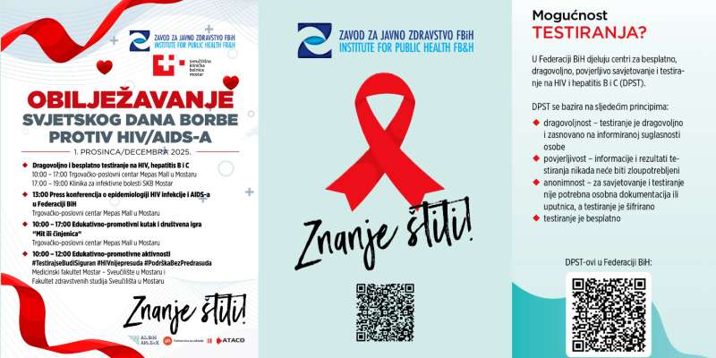 MOSTAR, 29. studenoga (FENA) - Povodom obilježavanja Svjetskog dana borbe protiv HIV/AIDS-a, Zavod za javno zdravstvo HNŽ-a u suradnji s Partnerstvom za zdravlje organizira dobrovoljno i povjerljivo savjetovanje i testiranje na HIV.