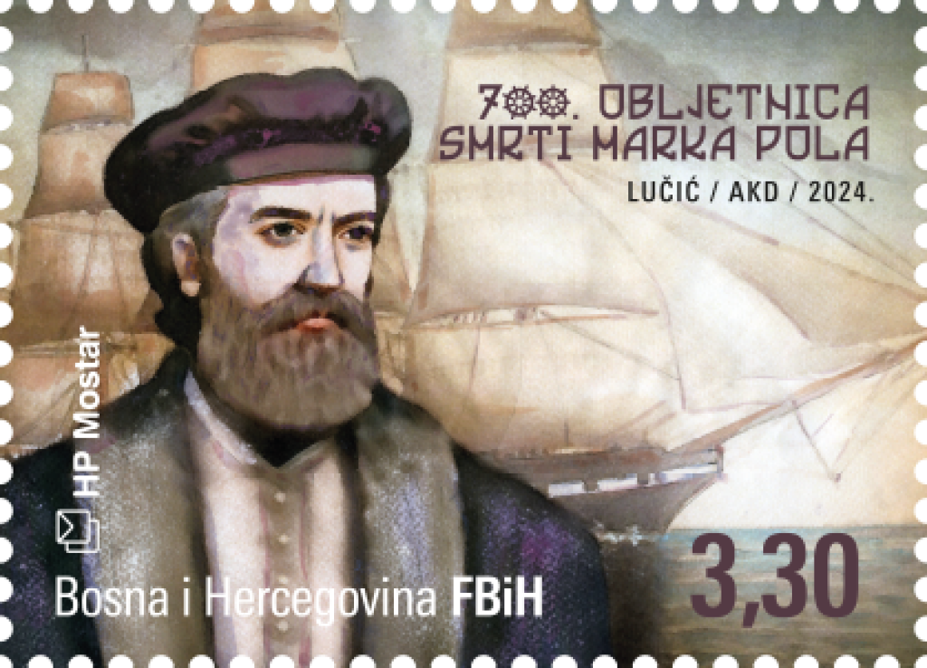 MOSTAR, 23. veljače (FENA) - Hrvatska pošta (HP) Mostar tiskala je prigodnu poštansku marku u povodu 700. obljetnice smrti istraživača i putopisca Marka Pola (Venecija ili Korčula, 1254. - Venecija, 8. 1. 1324.).