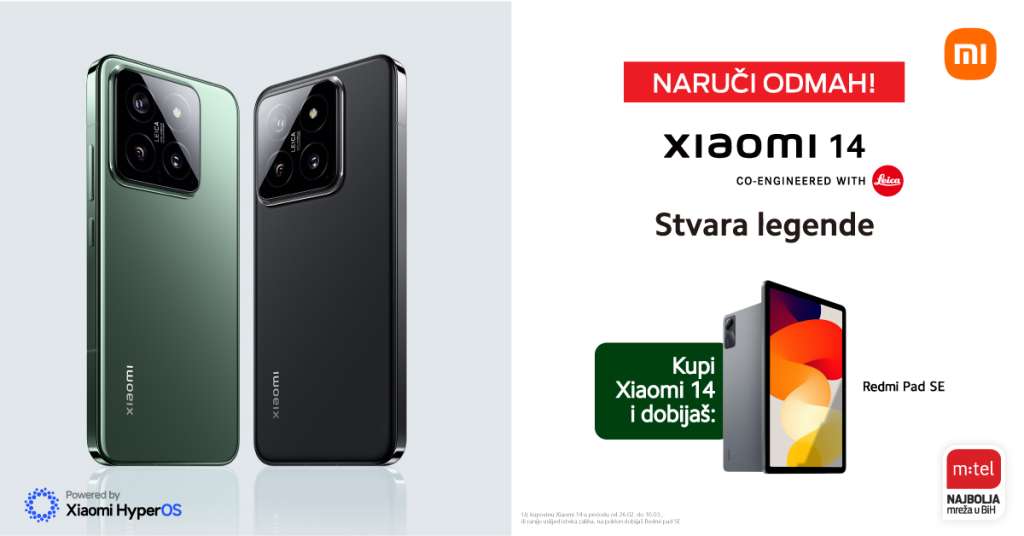 MOSTAR, 27. veljače (FENA) - Budite među trideset najbržih srećnika, naručite Xiaomi 14 pametni telefon iz m:tel ponude i na poklon ćete dobiti sjajni tablet Redmi PAD SE 4/128 GB!