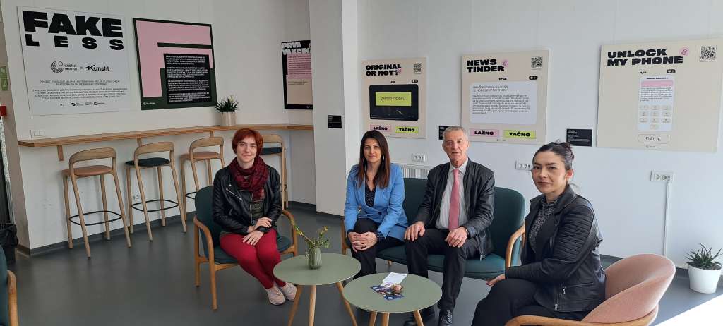 SARAJEVO, 5. aprila (FENA) - Direktor Nacionalne i univerzitetske biblioteke Bosne i Hercegovine Ismet Ovčina je sa saradnicama posjetio Goethe-Institut Sarajevo, gdje se susreo sa voditeljem biblioteke Markusom Kedziorom i koordinatoricom za informacije i bibliotečku saradnju Amirom Zvizdić.