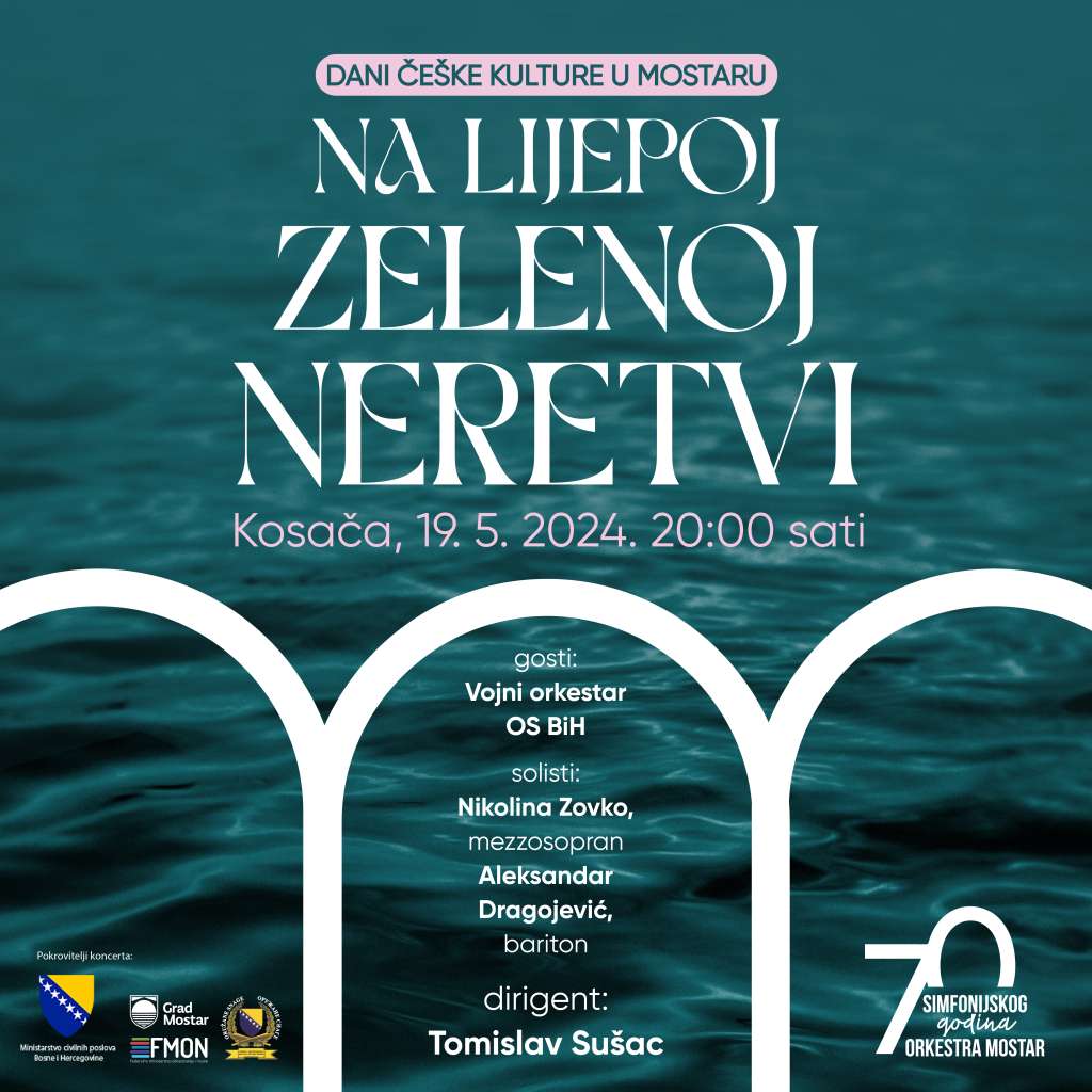 MOSTAR, 15. svibnja (FENA) - U nizu koncerata kojim Simfonijski orkestar Mostar ove godine obilježava 70. obljetnicu slijedi koncert u nedjelju, 19. svibnja, "Na lijepoj zelenoj Neretvi" prema nazivu valcera kojeg je koncem 19. stoljeća skladao češki oficir Karel Komzák u službi kapelmajstora vojnog orkestra u Mostaru.