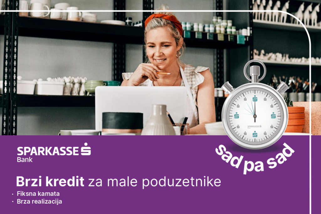 SARAJEVO, 2. jula (FENA) - Pod sloganom "Prijatelj malih biznisa", Sparkasse Banka je izdvojila iz svoje ponude set proizvoda i usluga koje su posebno kreirane za male poduzetnike, s ciljem podrške njihovom rastu i razvoju. Među ključnim proizvodima ističe se brzi kredit "Sad pa sad" za finansiranje trajnih obrtnih sredstava, koji mali poduzetnici realiziraju uz fiksnu kamatu i roku od 24 sata.
