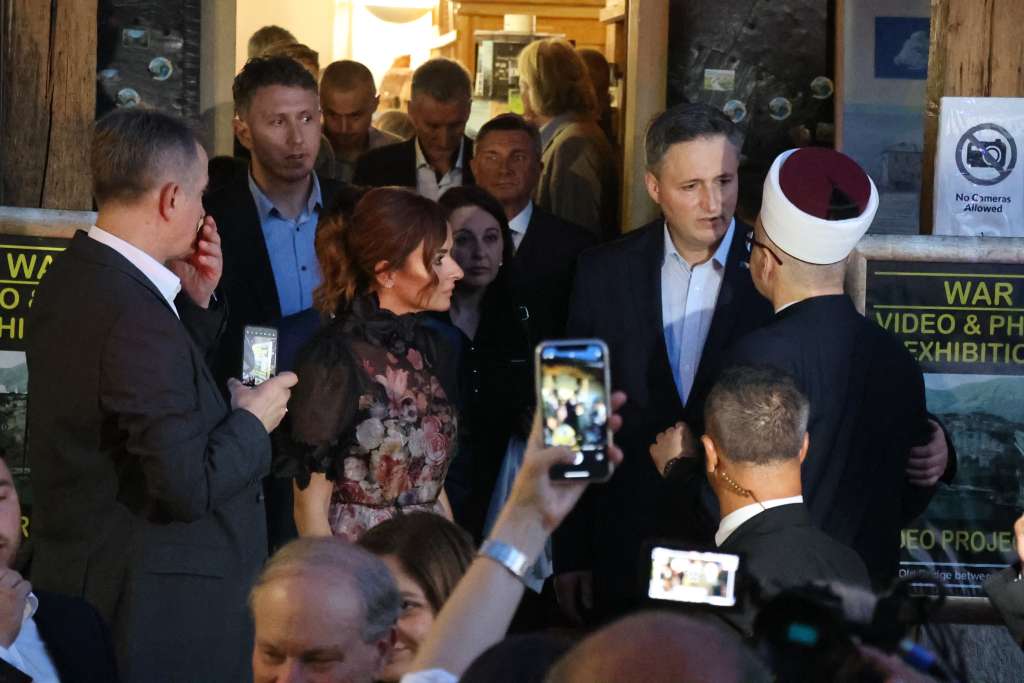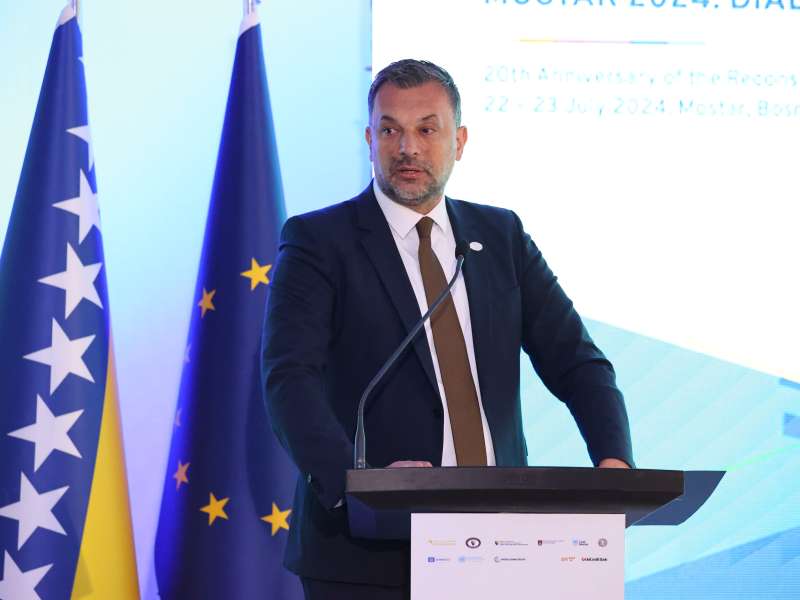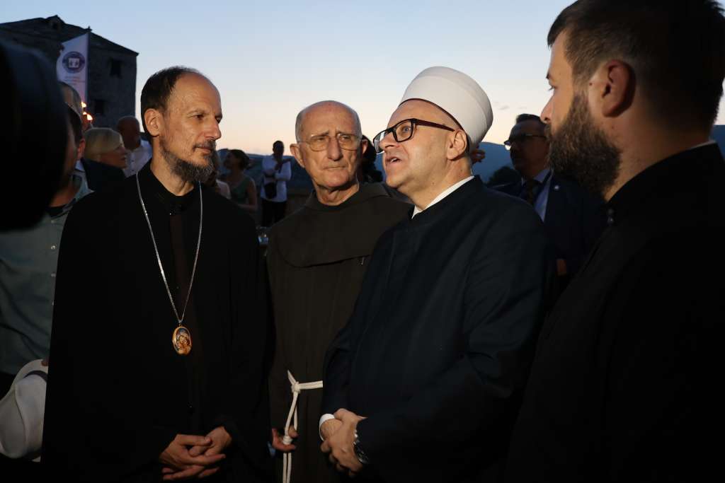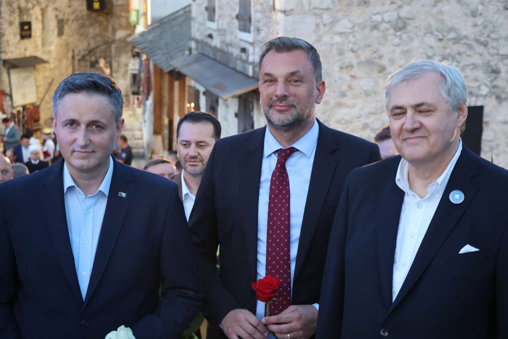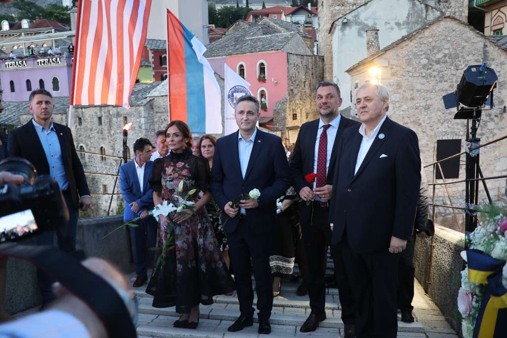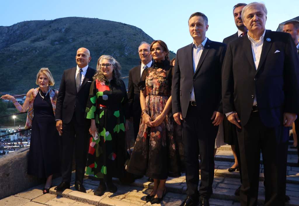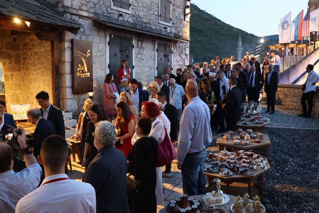 MOSTAR, 22. srpnja (FENA) – U okviru međunarodne konferencije ''Mostar 2024. - Dijalog za budućnost'', kojom se obilježava 20. godišnjica obnove Starog mosta u Mostaru, predsjedatelj Predsjedništva BiH Denis Bećirović domaćin je večerašnje mirovne večere za domaće i međunarodne visoke zvanice.
