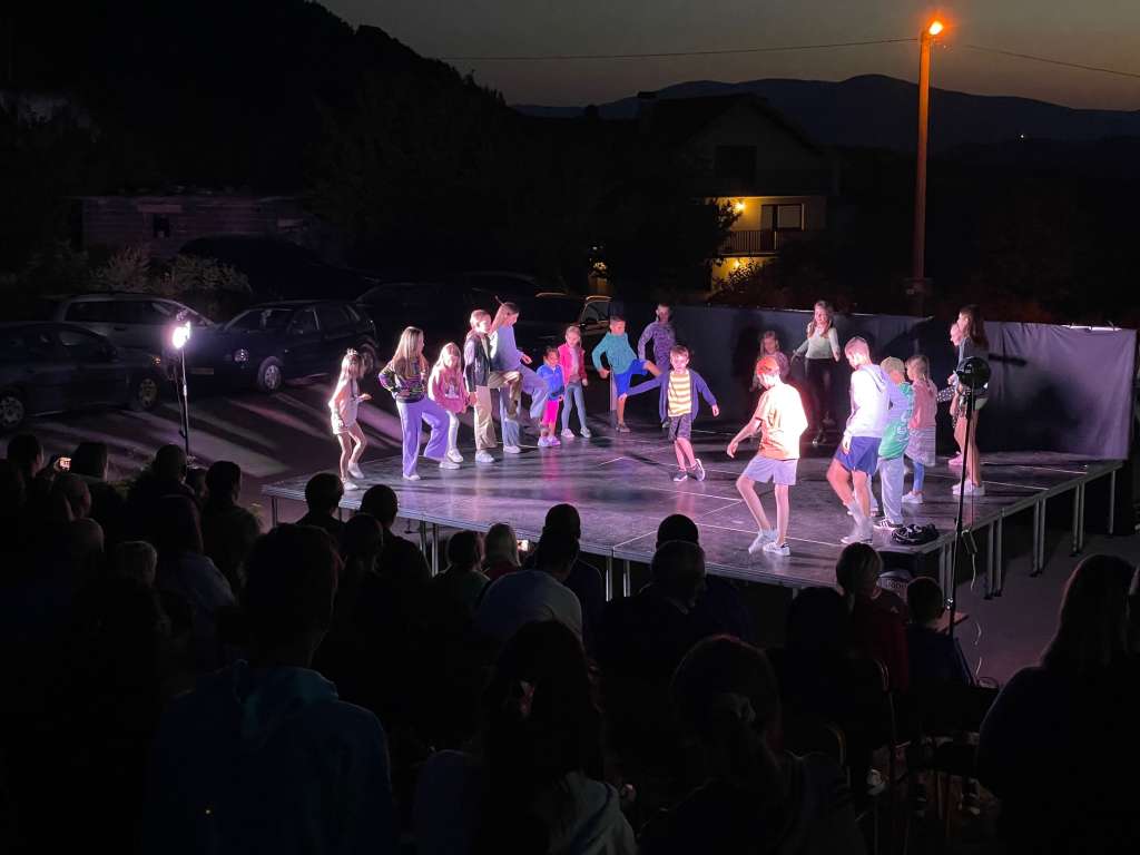 VITEZ, 1. kolovoza (FENA) - Na pozornici ispred Osnovne škole u Grahovčićima, polaznici Ljetnog kazališnog kampa u župi Brajkovići brojnoj su publici prezentirali naučeno tijekom desetak dana boravka u kampu.