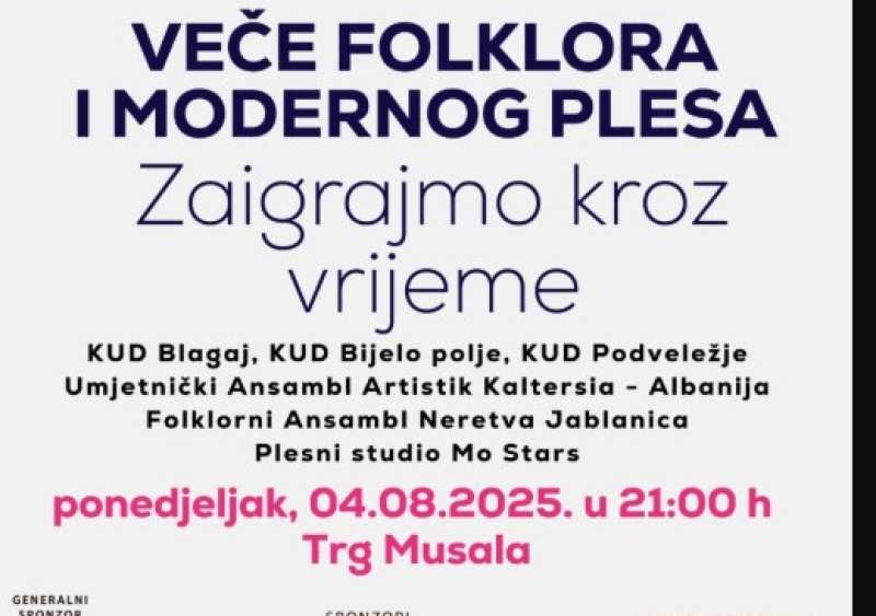 MOSTAR, 6. kolovoza (FENA) - U okviru međunarodne kulturne manifestacije „Mostarsko ljeto 2024“ u ponedjeljak su održana dva sadržaja: književna večer i večer folklora i modernog plesa.