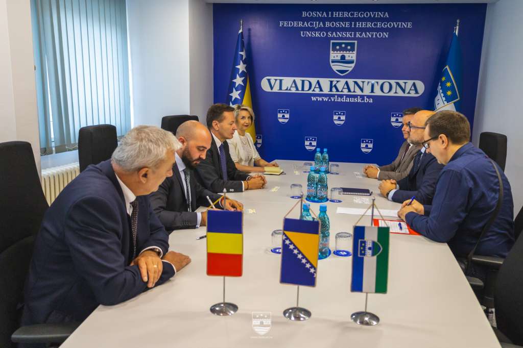 BIHAĆ, 26. augusta (FENA) – Ambasador Rumunije u Bosni i Hercegovini Anton Pacuretu boravio je u službenoj posjeti Unsko-sanskom kantonu gdje se sastao s premijerom Kantona Nijazom Hušićem i predsjedavajućim Skupštine Zikrijom Durakovićem. Posjeta je bila prilika za razgovore o uspostavljanju i jačanju saradnje između ovog dijela BiH i lokalnih zajednica te privrednika iz Rumunije, s posebnim naglaskom na razvoj turizma i potencijala obnovljivih izvora energije.