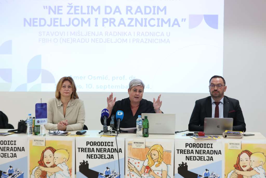 SARAJEVO, September 10 (FENA) - According to the results of the survey, 96 percent of the total number of respondents support the Draft Law on Internal Trade, according to which Sundays and holidays should become non-working days for shops and traders in FBiH, it was pointed out today at the public presentation of the survey on attitudes and the opinions of workers employed in the trade sector in the FBiH about the (non)working Sunday and holidays organized by the Trade and Service Workers' Union of BiH.