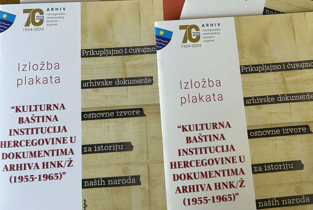 MOSTAR, 2. oktobra (FENA) - Arhiv Hercegovačko-neretvanskog kantona u sklopu obilježavanja svog jubileja 70 godina rada i postojanja upriličit će izložbu plakata pod nazivom “Kulturna baština institucija Hercegovine u dokumentima Arhiva HNK/Ž ( 1955-1965 )“, koja će se postaviti u Muzeju Hercegovine Trebinje, u Trebinju.
