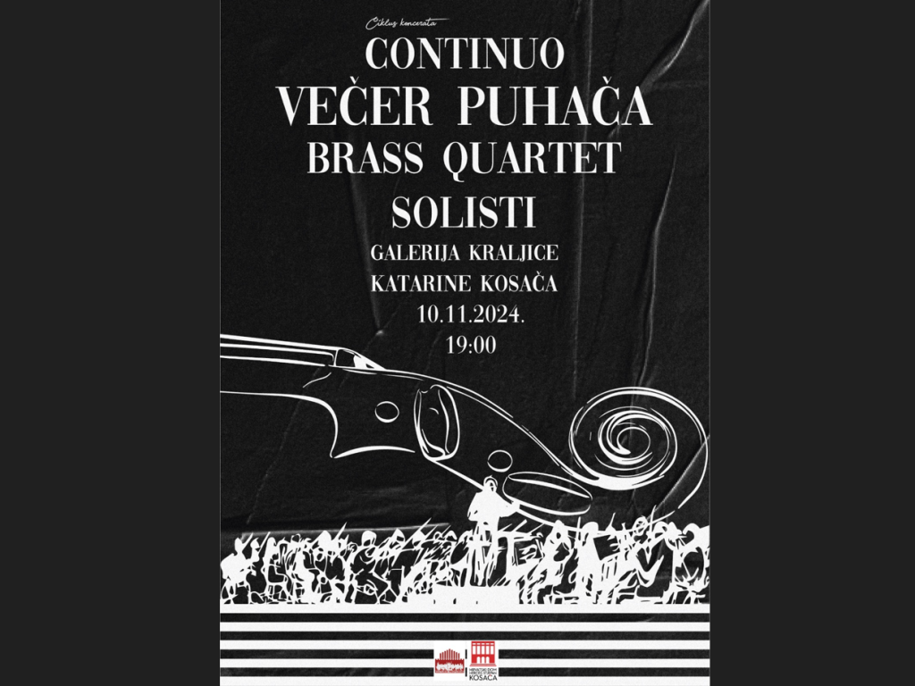 MOSTAR, 7. studenoga (FENA) - U okviru ciklusa koncerata "Continuo", udruga "Kulturni preporod" organizira " Večer puhača" u nedjelju, 10. studenoga, u 19 sati u galeriji Katarine Kosače u Mostaru.
