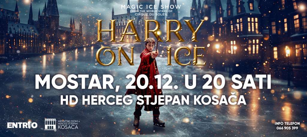 MOSTAR, 5. prosinca (FENA) – Svjetski poznati Cirque du Soleil donosi spektakularnu predstavu na ledu pod nazivom Harry on Ice! u petak, 20. prosinca, s početkom u 20 sati, u Hrvatskom domu hercega Stjepana Kosače u Mostaru.
