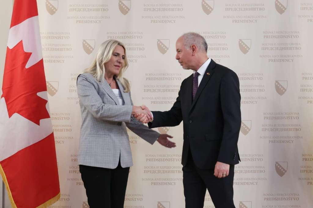 SARAJEVO, 12. decembra (FENA) - Predsjedavajuća Predsjedništva BiH Željka Cvijanović primila je akreditivno pismo novoimenovanog ambasadora Kanade za BiH sa sjedištem u Budimpešti Françoisa Lafrenièrea.