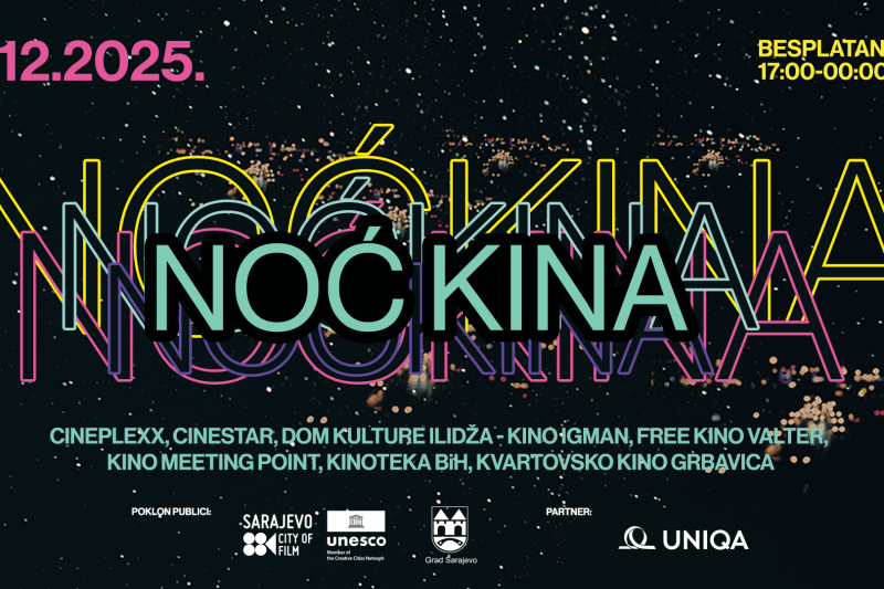 SARAJEVO, 14. decembra (FENA) - Sarajevo grad filma UNESCO-a i ove godine organizuje Noć kina, tradicionalnu manifestaciju koja će četvrti put za redom besplatno otvoriti vrata kina u Sarajevu.