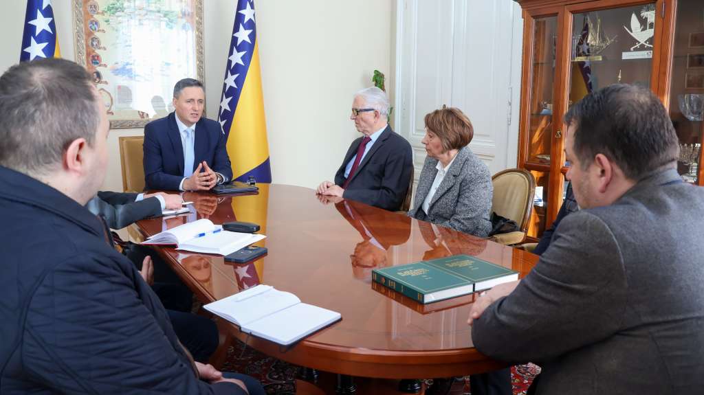 SARAJEVO, 19. decembra (FENA) - Član Predsjedništva Bosne i Hercegovine Denis Bećirović danas je razgovarao s delegacijom Vijeća Kongresa bošnjačkih intelektualaca (VKBI) o strateškim projektima, istaknuvši važnost uloge Vijeća u očuvanju bošnjačkog identiteta i kulturnog naslijeđa.