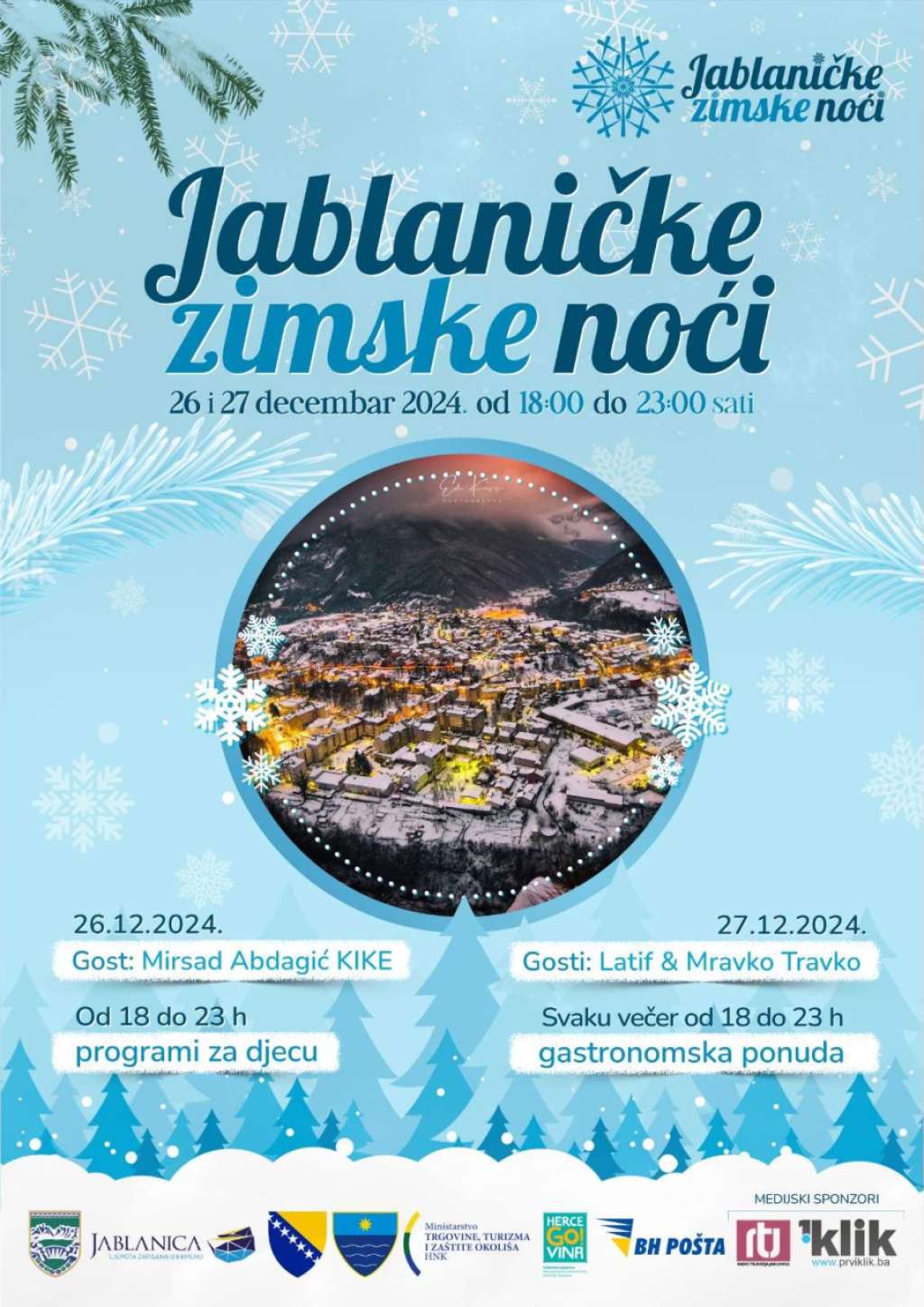 JABLANICA, 20. prosinca (FENA) - Jablanica će i ove godine biti domaćin manifestacije "Jablaničke zimske noći”, koja će se održati 26. i 27. prosinca u Gradskom parku, najavljeno je iz te općine.