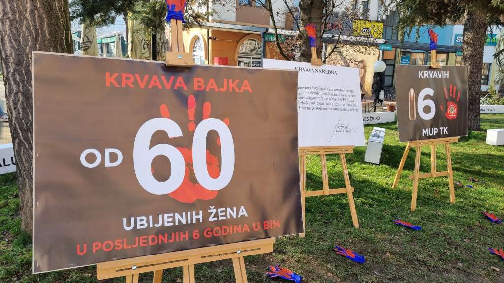 TUZLA, 7. februara (FENA) - Godišnjica svirepog ubistva Amre Kahrimanović, koje je počinio službenik Uprave policije Ministarstva unutrašnjih poslova Tuzlanskog kantona Elvis Ćustendil, obilježena je danas u Tuzli na raskrsnici Turalibegove i ulice Maršala Tita, ispred MUP-a TK.