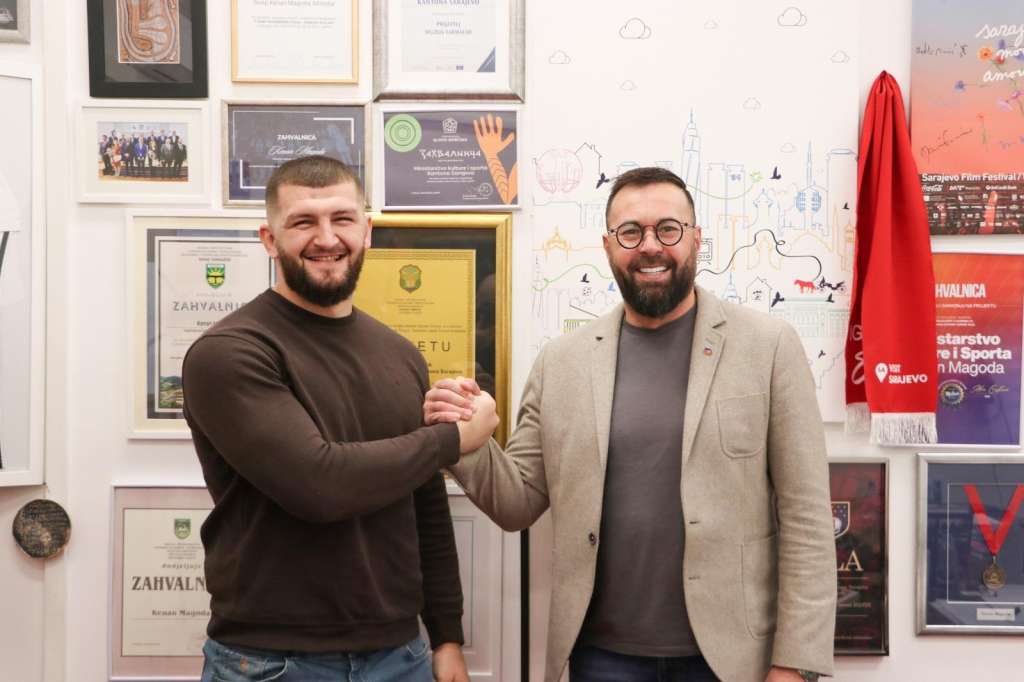 SARAJEVO, 12. februara (FENA) - Najbolji bosanskohercegovački kickbokser Ahmed Krnjić, dvostruki prvak Evrope i viceprvak svijeta, te član prestižne svjetske kickboks organizacije Glory, posjetio je ministra kulture i sporta Kantona Sarajevo Kenana Magodu.