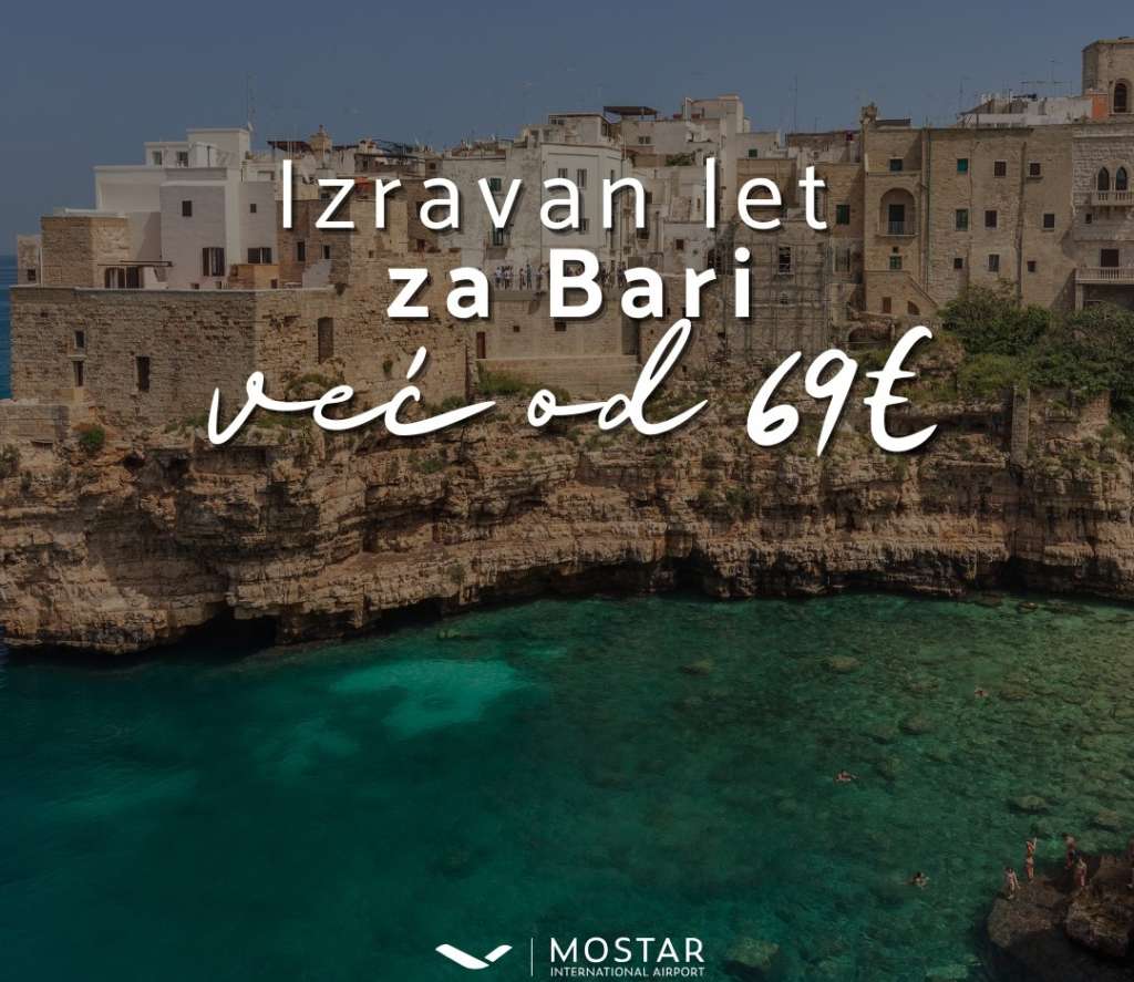 MOSTAR, 14. veljače (FENA) - Iz mostarske Zračne luke u petak su priopćili da su karte za Bari službeno u prodaji po cijeni od 69 eura po smjeru.