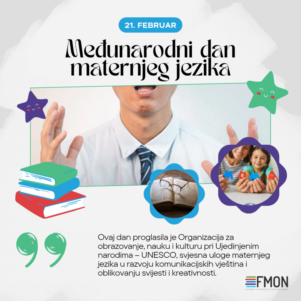 MOSTAR, 21. februara (FENA) - Federalno ministarstvo obrazovanja i nauke uputilo je čestitku povodom Međunarodnog dana maternjeg jezika, koji se svake godine obilježava 21. februara s ciljem očuvanja, unapređenja i razvoja maternjih jezika, kao i njegovanja jezične i kulturne raznolikosti.