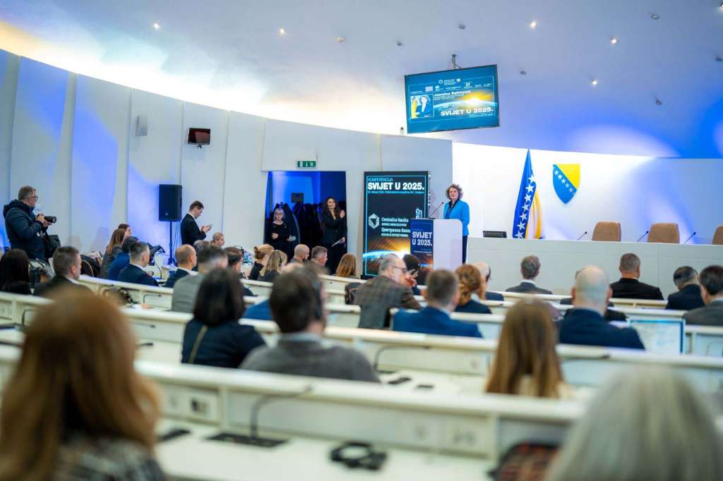 SARAJEVO, 27. februara (FENA) - Konferencija "Svijet u 2025", u organizaciji kompanije Color Media Communications, uz institucionalnu saradnju sa Centralnom bankom Bosne i Hercegovine (CBBiH), i podršku Delegacije Evropske unije u Bosni i Hercegovini, Ambasade Velike Britanije u Bosni i Hercegovini i Ekonomskog fakulteta Univerziteta u Sarajevu,održana je u srijedu u Sarajevu. Okupila je vodeće ekonomske eksperte, privrednike i nosioce najviših javnih funkcija kao i predstavnike diplomatske zajednice u BiH.
