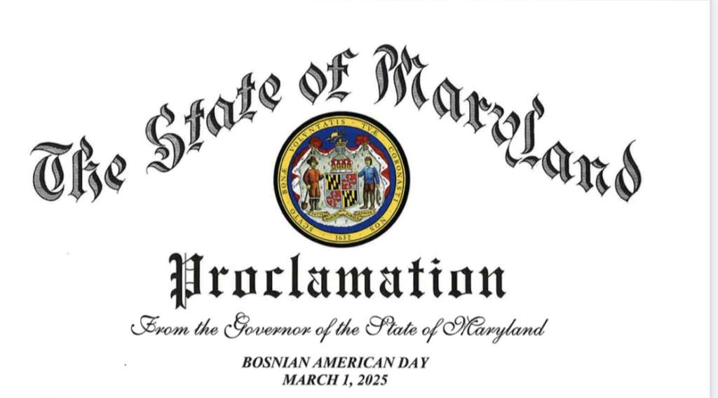 ANNAPOLIS, 28. februara (FENA) - Savezna država Maryland, na inicijativu guvernera Wesa Moorea, proglasila je 1. mart Danom prijateljstva između Bosne i Hercegovine i Marylanda.