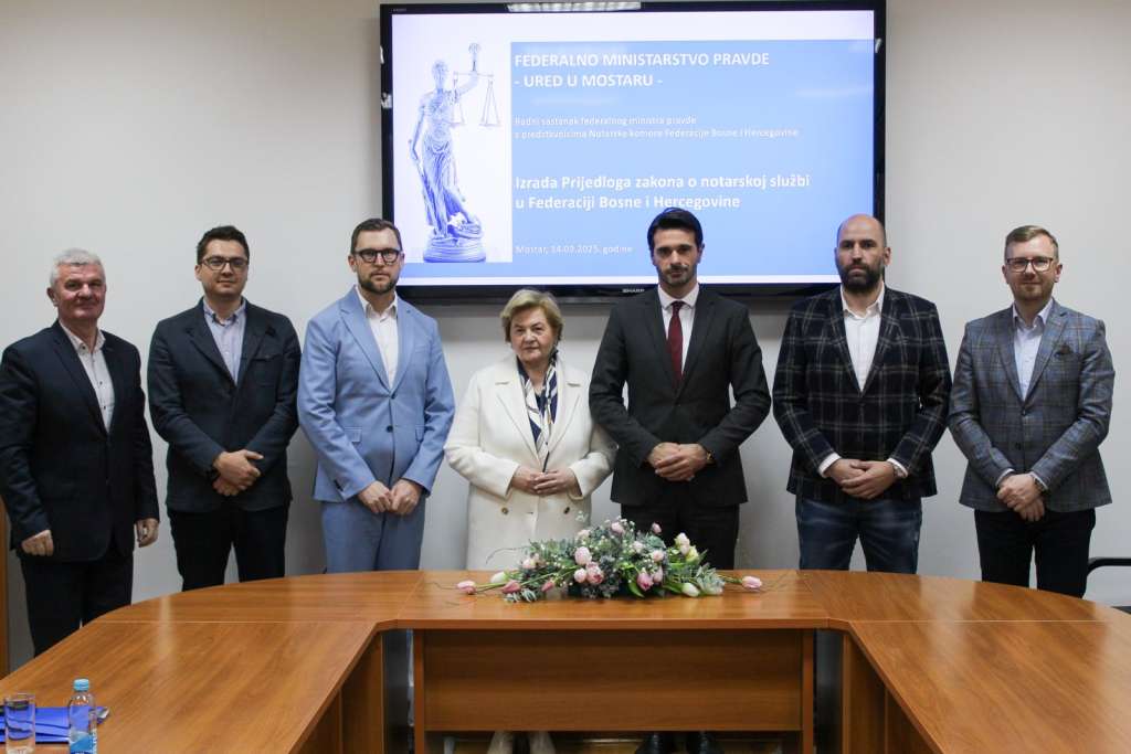 MOSTAR, 14. marta (FENA) - Federalni ministar pravde Vedran Škobić održao je, u Uredu Federalnog ministarstva pravde u Mostaru, sastanak sa predstavnicima Notarske komore Federacije Bosne i Hercegovine. Usuglašeni su stavovi i razriješena sporna pitanja, koja se odnose na novi zakon o notarskoj službi u Federaciji Bosne i Hercegovine.
