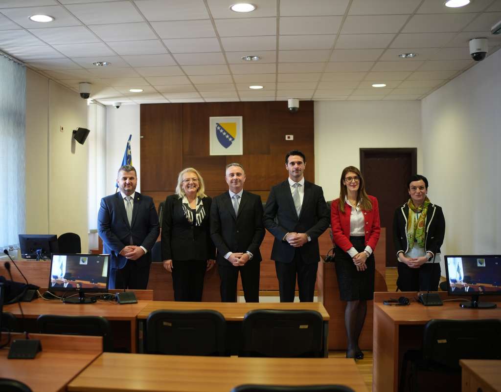 NOVI TRAVNIK, 19. ožujka (FENA) - Predsjednica Federacije BiH Lidija Bradara boravila je u službenoj posjeti Novom Travniku, gdje se, u pratnji federalnog ministra pravde Vedrana Škobića i gradonačelnika Stjepana Duje, sastala s predstavnicima pravosuđa, obrazovanja, zdravstva i kulture te obišla ključne projekte koji oblikuju budućnost ovog grada, a čija je vrijednost veća od 15 milijuna KM.