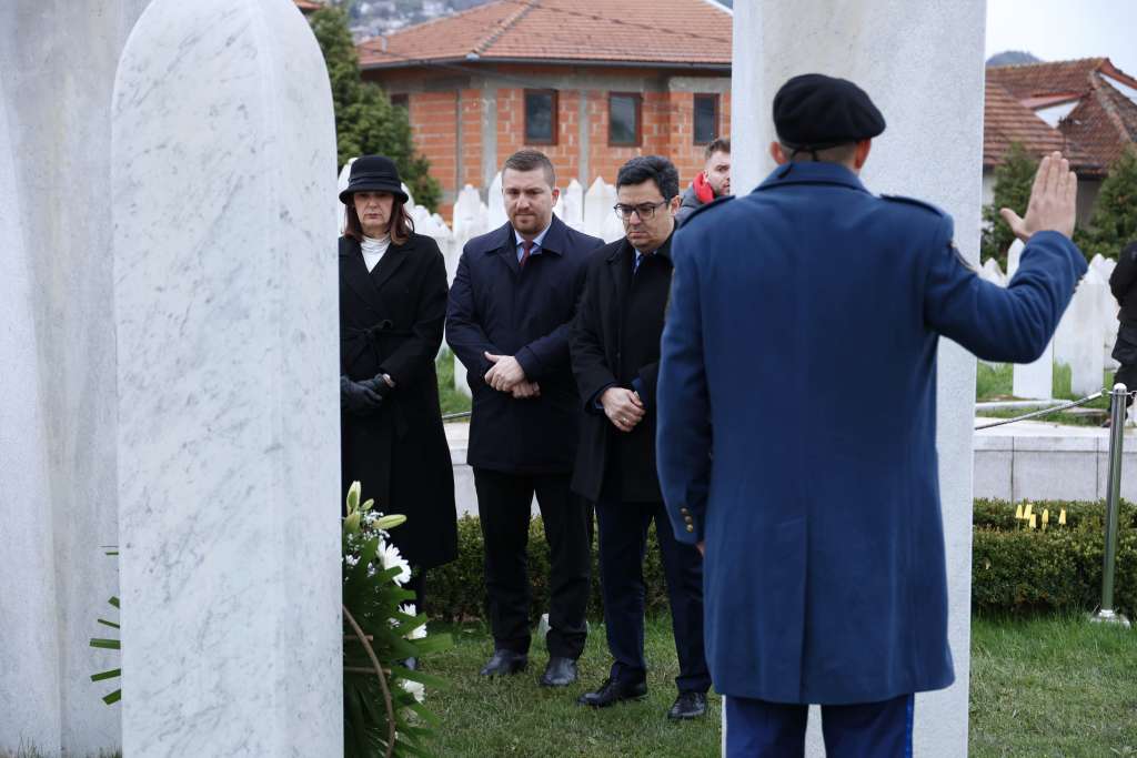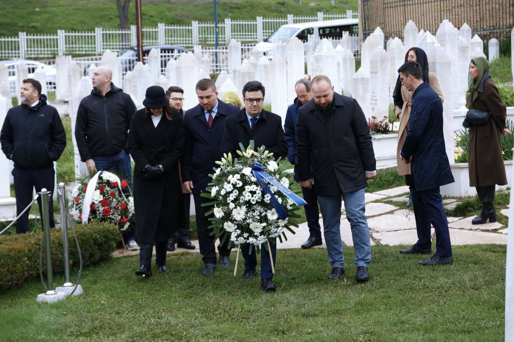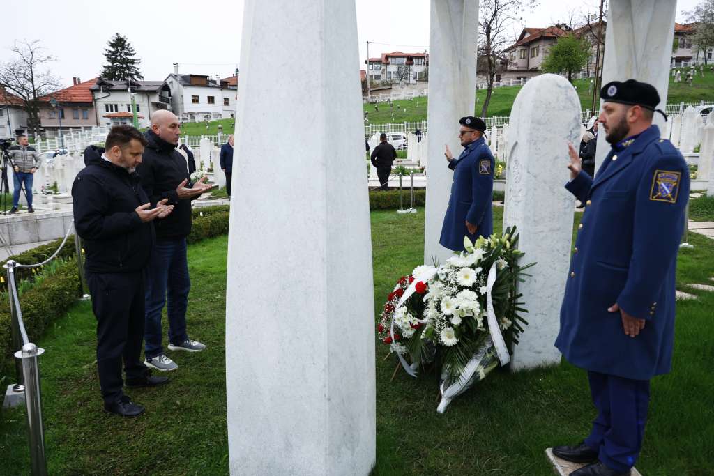 SARAJEVO, April 6 (FENA) - Representatives from state, entity, cantonal, municipal, and city governments in Bosnia and Herzegovina, veterans' associations, and other delegations paid tribute and laid flowers this morning on the occasion of April 6 - the Day of the City of Sarajevo at the Eternal Flame Memorial, the Kovači Martyrs' Cemetery and the grave of the first President of the Presidency of the Republic of Bosnia and Herzegovina, Alija Izetbegović.